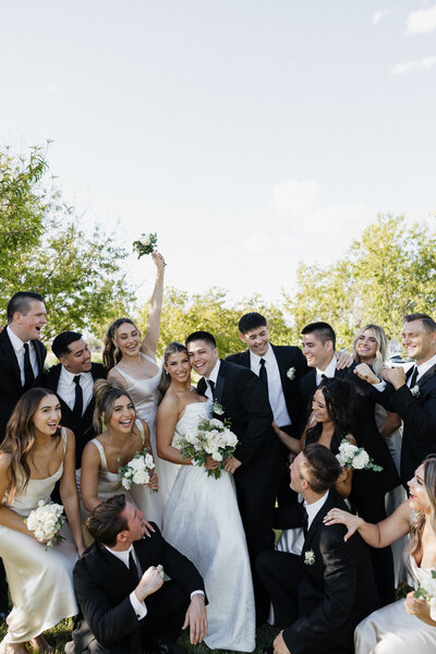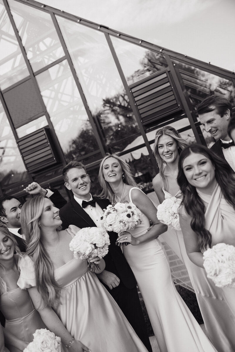 Posed wedding party photos (in both robes/PJs and wedding attire)